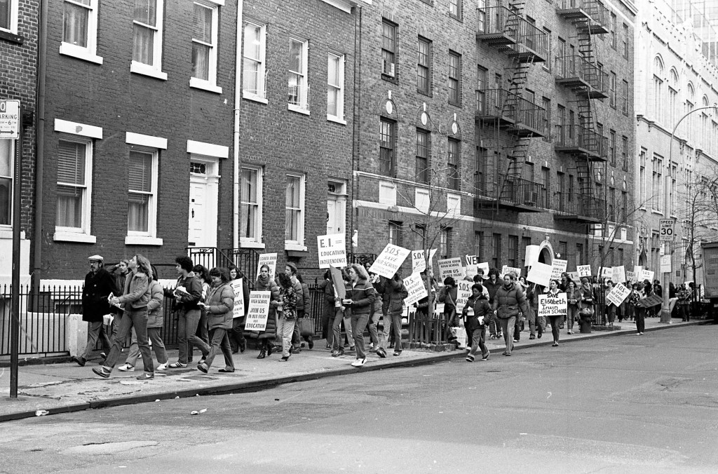 LREI students rally to stop their beloved school from closing, mostly due to financial hardship. The school was ultimately saved by its community and remained open.